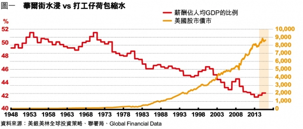 2008年金融危機後實行量寬政策(QE),全球央行開大水喉,股市、樓市水浸,同樣是肥了「大到不能倒」的資本家,瘦了平民。量寬導致實體經濟萎縮,民眾購買力下降,加速中產向下流〔見圖〕。