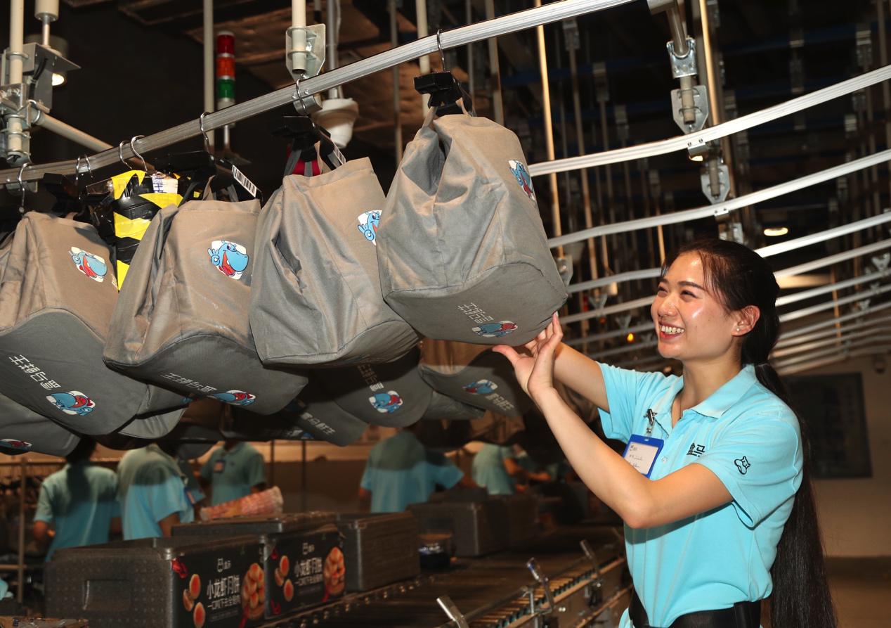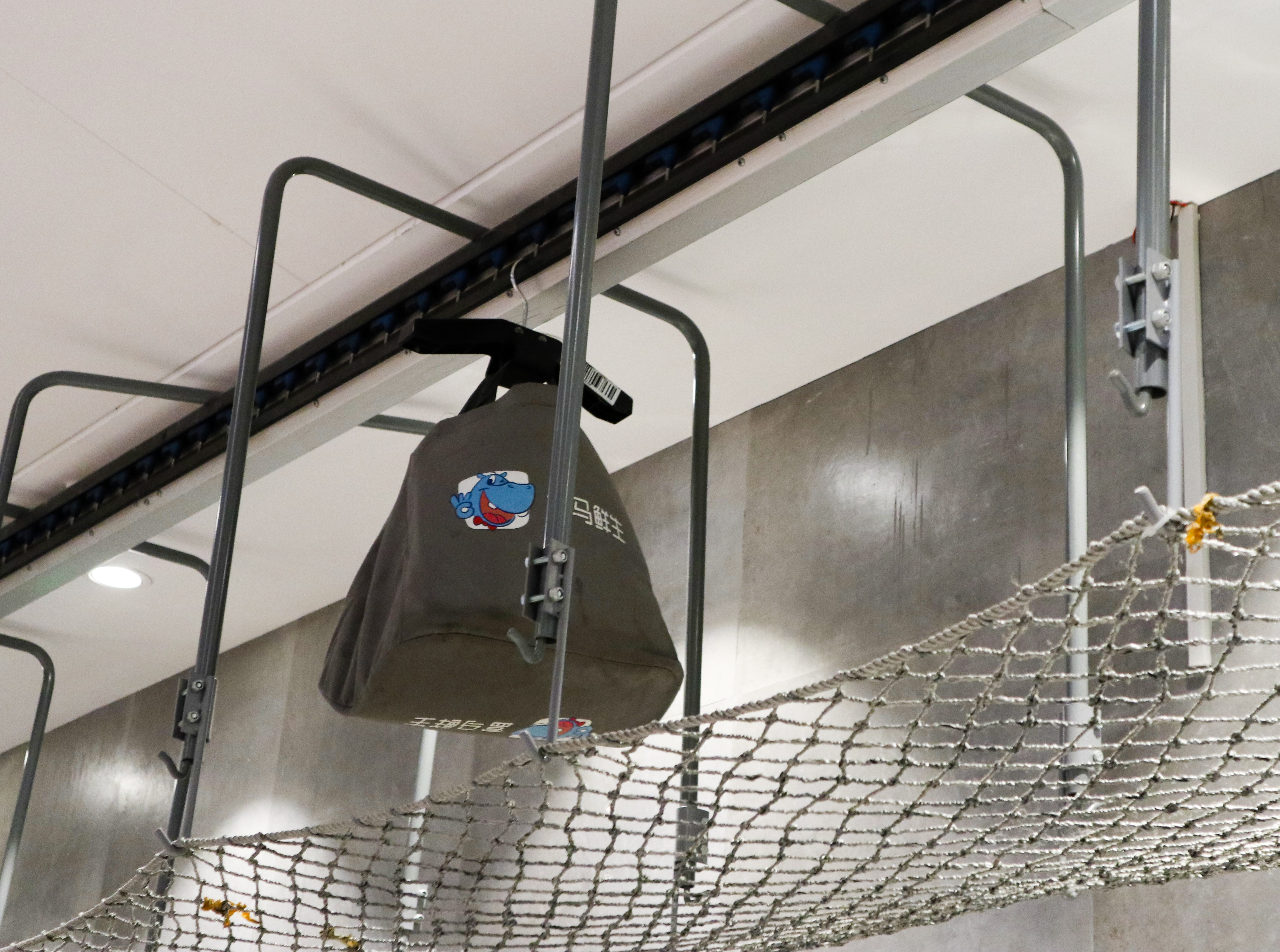 盒馬最受人熱議的地方,就是他們鋪滿天花板的運輸帶。香港要看到類似運輸帶,要到中央圖書館;而在中國,現在一間超市都運用這技術了。運輸帶隨後會將不同的購物袋送到超市後台,按訂單編號,分送到特定的職員面前。每個購物袋旁有盞燈,貨品未齊會亮紅色,貨品齊全就會變綠色,科技主導,避免出錯。