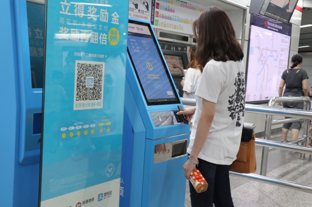 交通工具也不乏支付寶身影。坐的士能以支付寶付費不在話下,連坐巴士、搭地鐵也能用支付寶。以地鐵為例,乘客可在任何地方用支付寶提早買票,到了地鐵站後,只需在自助取票機前掃一掃,便能拿票入閘。