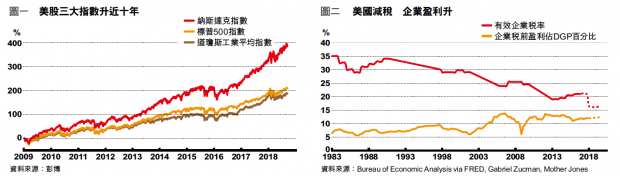 美股九年半來升勢如虹,累計漲幅超過320%,創下最長牛市紀錄〔圖一〕。近期環顧全球,美股更是一枝獨秀。「十年」向來都是經濟魔咒,不少市場中人因此擔心美國經濟已經走到強弩之末,例如諾貝爾經濟學獎得主席勒﹙RobertShiller﹚。