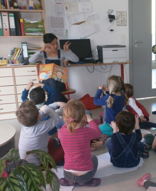 紅蕃媽媽表示,在幼稚園內,所有三至六歲的小孩會混齡分組上堂,每組大約二十人,小班教學。三歲的小孩會模仿哥哥、姐姐的行為,學會照顧自己。「我覺得香港教育和德國教育的最大分別是,香港是言教,德國就是身教,不講那麼多道理,反而是一齊做。」她說。