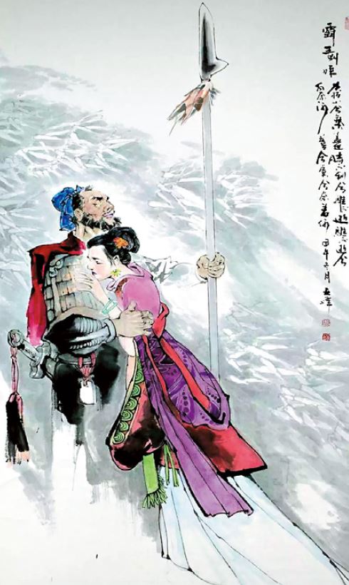 危急關頭,劉邦部下樊噲帶劍擁盾闖入軍門,怒目直視項羽。司馬遷寫道:「樊噲即帶劍擁盾入軍門。交戟之士欲止不內,樊噲側其盾以撞,士仆地,噲遂入,披帷西向立,瞋目視項王,頭髮上指,目眥盡裂。」短短數句已把此勇士寫得繪聲繪影,也令項羽對他刮目相看。